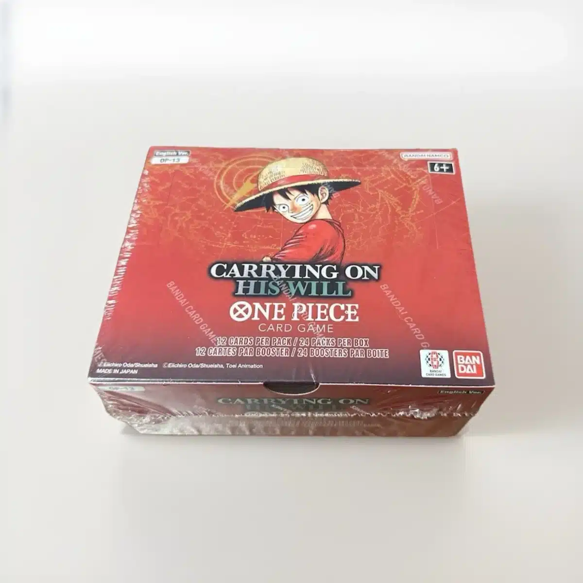 The One Piece Card Game OP-13 Carrying on His Will Booster Box is an official English TCG release, delivered brand new and factory sealed. This expansion focuses on legacy, determination, and the will passed down between iconic characters from the One Piece universe.